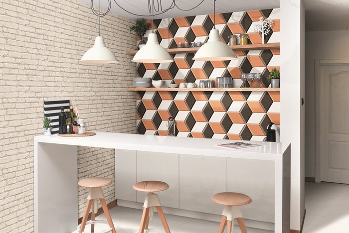 Velikost dekorativnih rombporcelanastih ploščic 28,5×33 ; 70×40 cm.